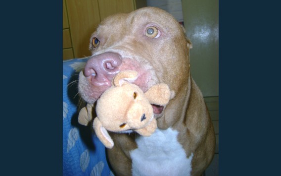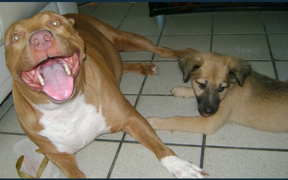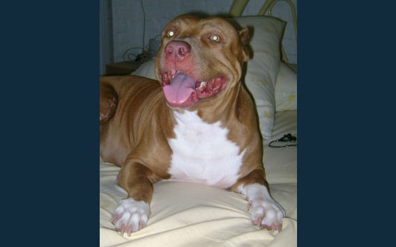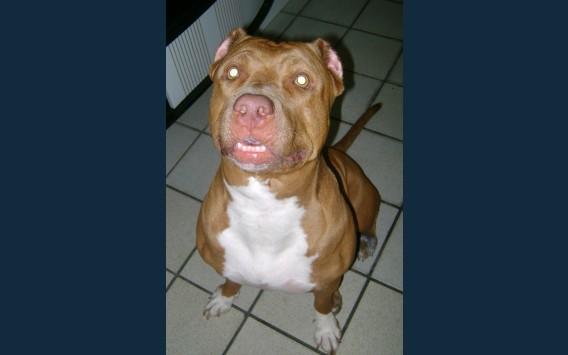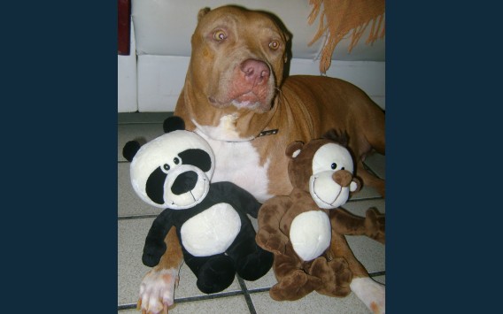 Uma pitbull linda, amorosa, mansa!! Um amor!! Pra quem diz que Pitbull é uma raça perigosa, está muito enganado!